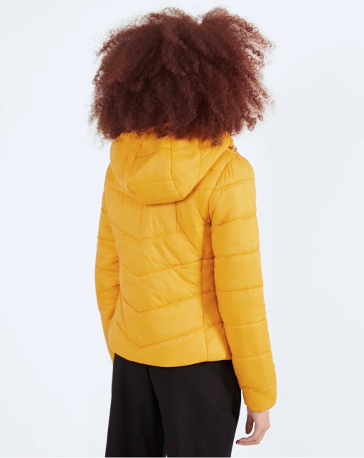 The insulated jacket is made of leather. A light layer of insulation. Details: stand-up collar, zipper, two pockets on the sides.